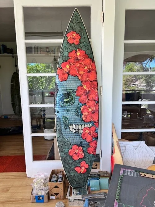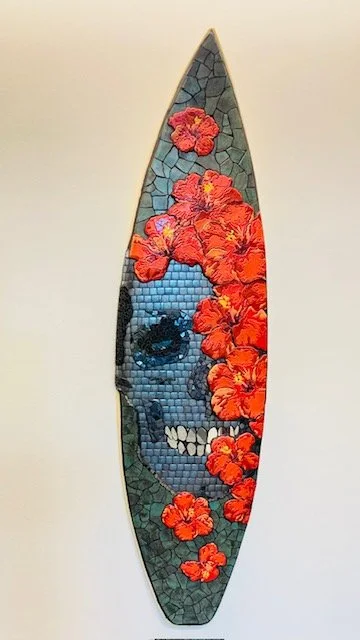 Featured items will be custom pieces made for the show; two collaborative pieces; smaller framed art; and surfboard art